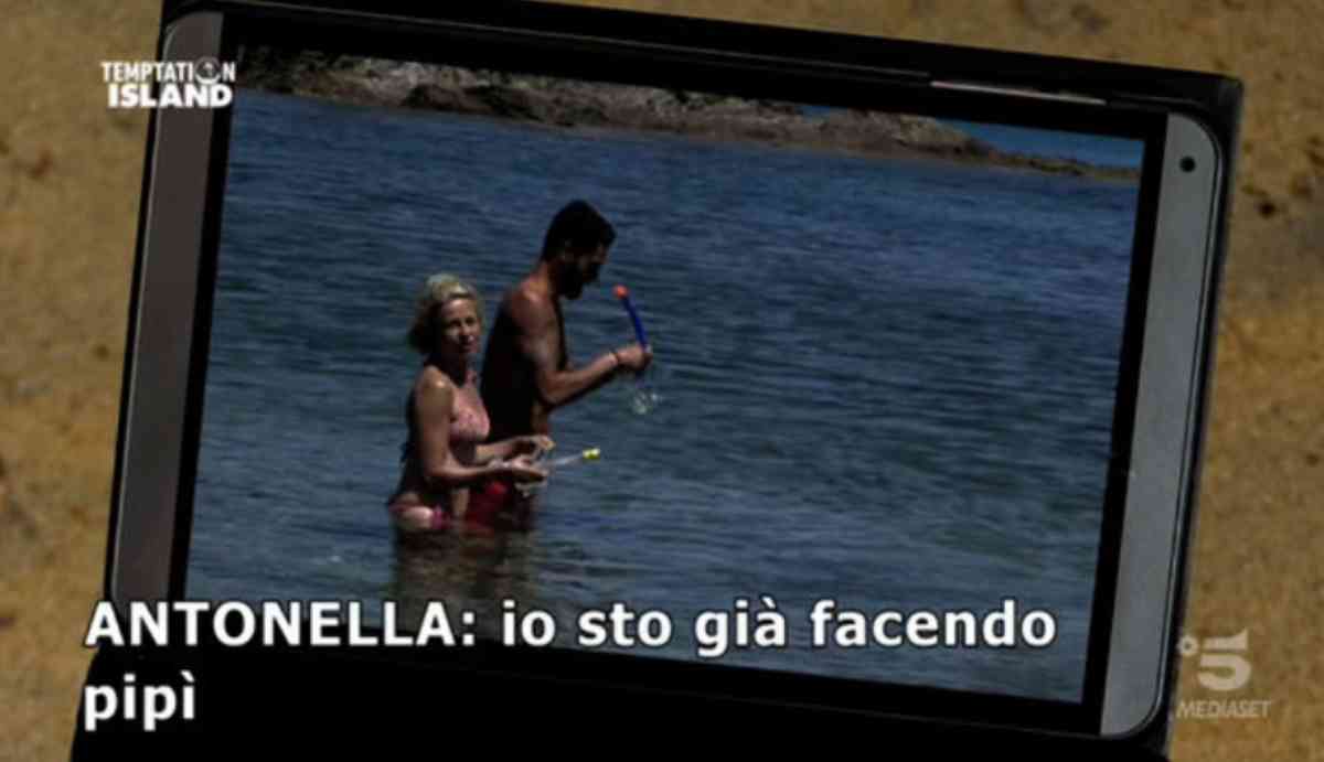 Antonella Elia fa pipì in acqua? Sì, sì, così pare. Nella seconda puntata di Temptation Island, in onda giovedì 9 luglio 2020, l’ex volto di “Non è la Rai”, parlando col bel “tentatore” Alessandro, per tutti Ale, ha ammesso su Canale 5 che uno dei “grandi piaceri della vita” è farla…in mare!