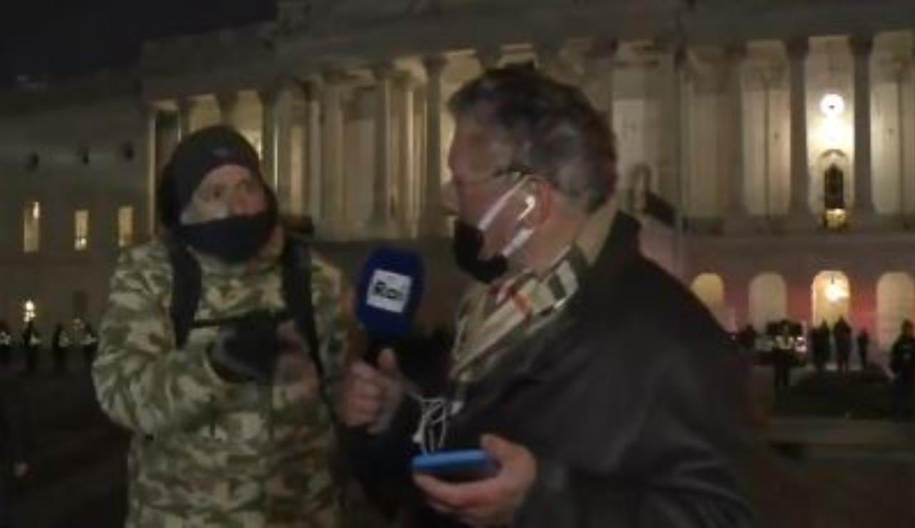 Alcuni sostenitori di Trump, aizzati sicuramente dalle parole che l’ex Presidente ha lanciato via social, hanno fatto irruzione durante la riunione, scatenando il caos. Proprio in quei momenti così concitati, il giornalista Rai stava raccontando ciò che stava accadendo alle sue spalle, quando è stato verbalmente aggredito da un uomo con viso coperto, apparso all’improvviso.