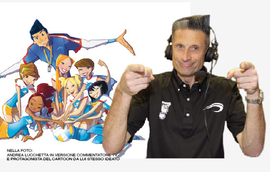 Proprio Lucky è uno dei protagonisti del cartone animato, ex campione di pallavolo allenatore della squadra femminile delle Spikes.