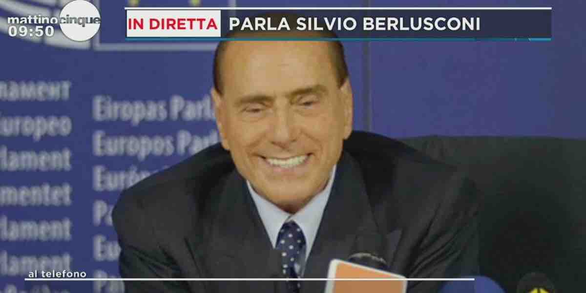 Sopra e sotto il video Mediaset con l’intervento in diretta del Cavaliere Silvio Berlusconi a Mattino Cinque.