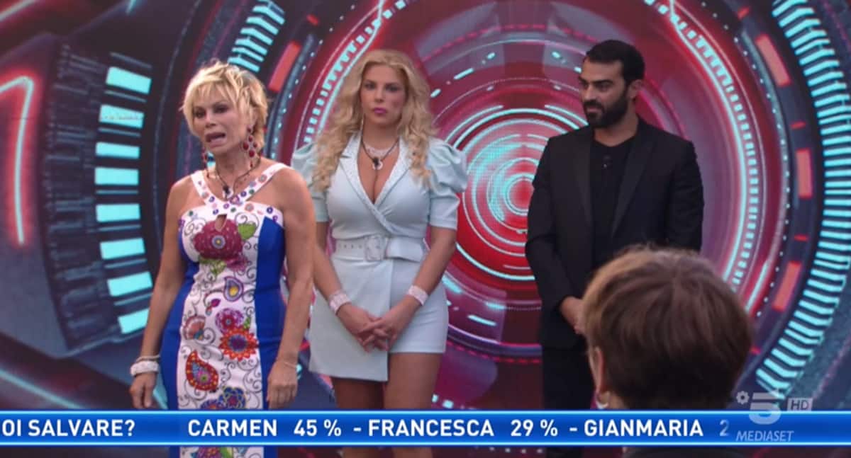 Grande Fratello Vip, chi è uscito ieri sera lunedì 1° novembre? Al televoto c’erano: Carmen Russo, Francesca Cipriani e Gianmaria Antinolfi. Alfonso chiude ufficialmente il televoto. Il verdetto: Carmen Russo è la preferita dal pubblico con il 45% delle preferenze, seguono Francesca con il 29% e Gianmaria con il 26%. Carmen è quindi immune. Carmen può salvare un solo VIP e la sua scelta ricade su Francesca poi condanna Gianmaria al televoto che va quindi in nomination. Ecco Il Video Mediaset.