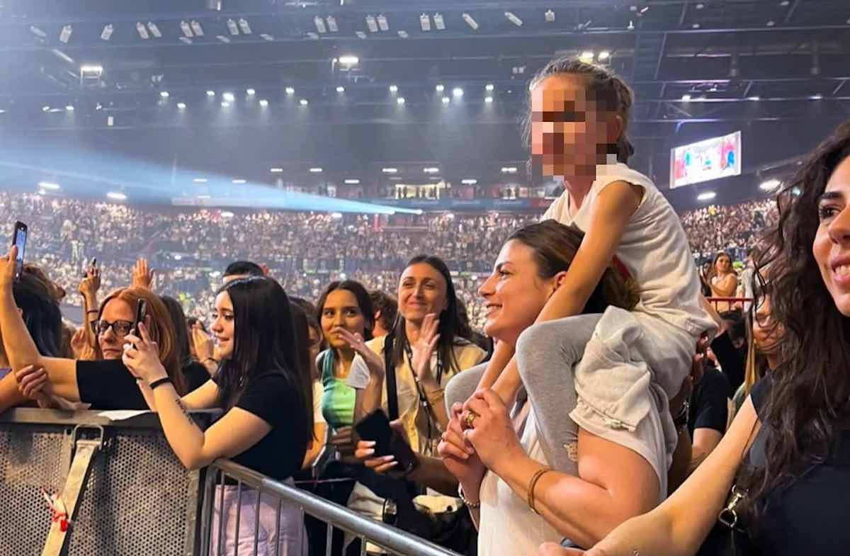 Concerto Tananai, Emma tra il pubblico con una bambina sulle spalle