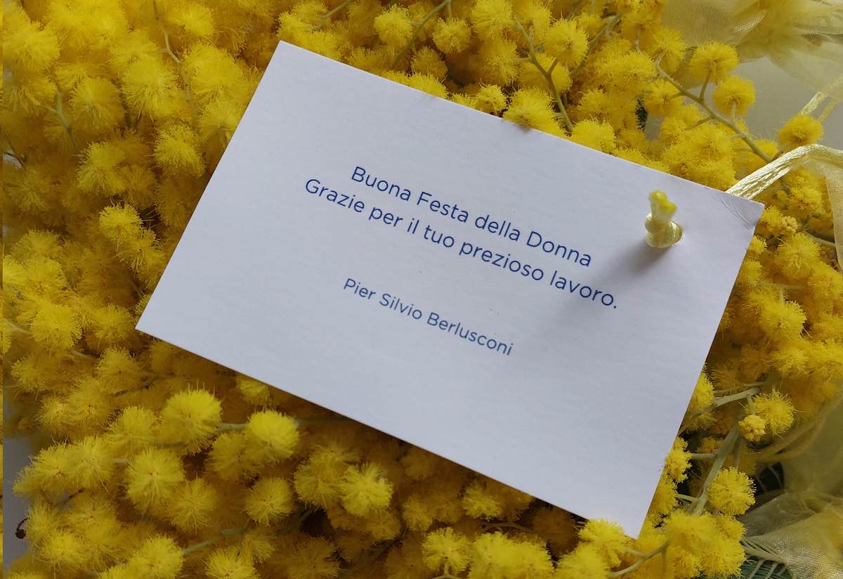 Questa mattina, 8 marzo 2024, sulle scrivanie e su ogni luogo di lavoro, le Donne che ogni giorno operano all’interno degli studi e gli uffici di Cologno Monzese, Milano e Roma hanno ricevuto in omaggio dall’amministratore delegato del gruppo televisivo e radiofonico Mediaset Pier Silvio Berlusconi le classiche mimose, simbolo di questa giornata dedicata alle Donne. Ad accompagnare il floreale omaggio anche un biglietto che riporta l’augurio e il ringraziamento per il lavoro che ogni giorno le Donne del gruppo Mediaset svolgono con dedizione e impegno.