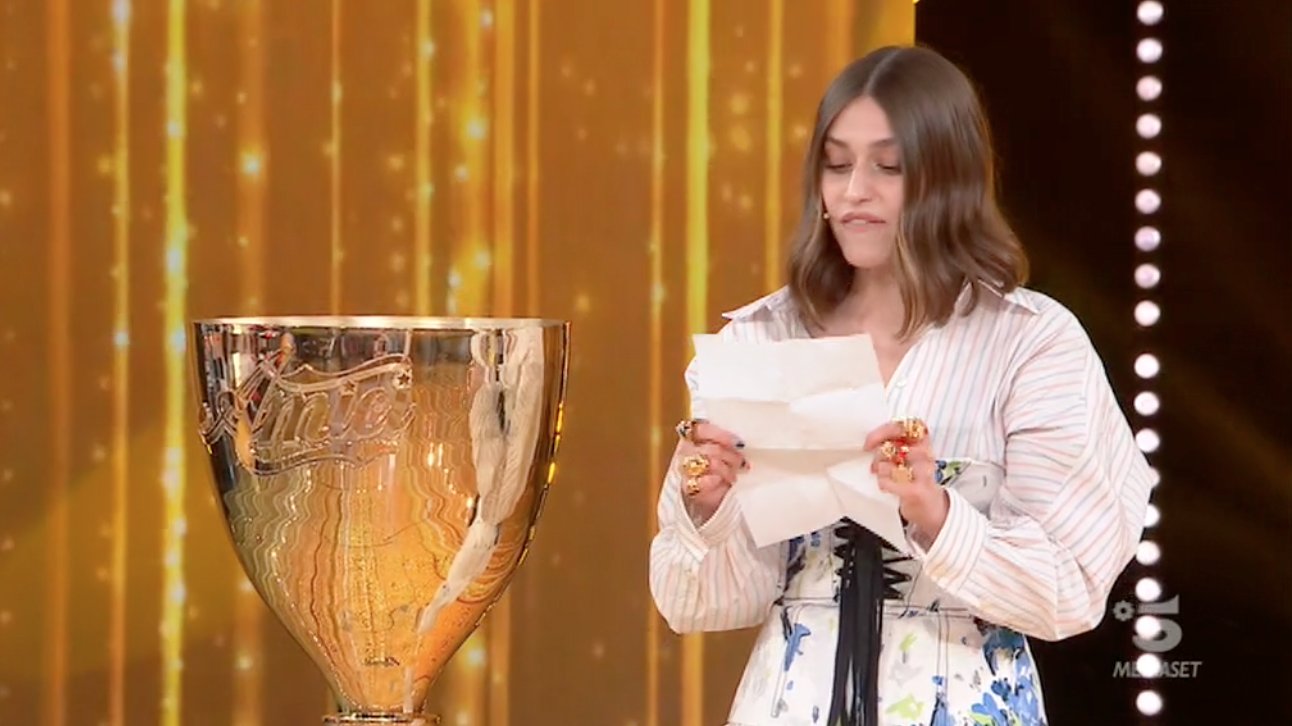 Gaia Gozzi ad Amici 2021 ha riportato in studio l’ambita Coppa della vittoria del talent di Maria De Filippi. La vincitrice della scorsa edizione, visibilmente emozionata, ha salutato il pubblico. Anno scorso, infatti, non c’era nessuno presente a causa della pandemia. La cantante ha poi letto una bellissima lettera ai 5 finalisti. Ecco il video Witty Tv.