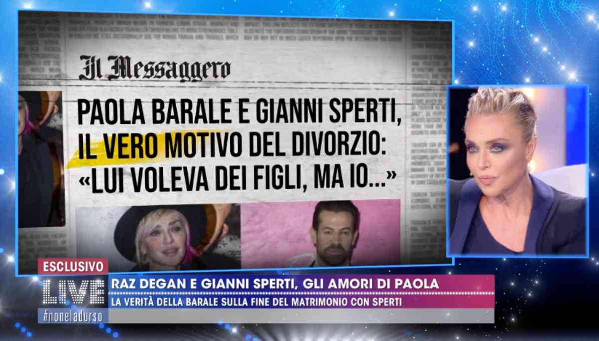Paola Barale parla di figli, del matrimonio con Gianni Sperti e di Raz Degan. Nella nuova puntata di Live – Non è la D’Urso, in onda ieri sera, domenica 26 gennaio 2020, l’ex conduttrice di Buona Domenica ha commentato così, in un’intervista esclusiva, alcune immagini riguardanti le due importanti storie d’amore della sua vita: “Persone finite nel dimenticatoio“. Il video da Mediaset Play. Qui anche il commento della diretta interessata alle dichiarazioni vs Signorini.